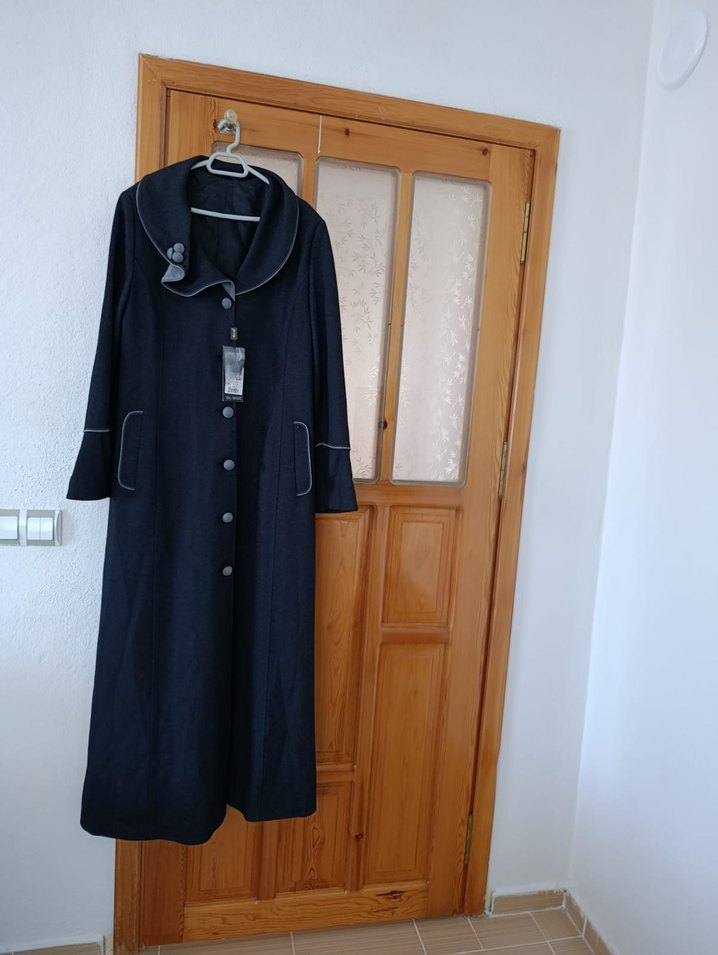 Düğmeli, siyah uzun kaban, yaka detaylı ve uzun kolludur. Rahat kesimi ve yumuşak, sıcak kumaşı günlük kullanım için uygundur. marka temsilidir
