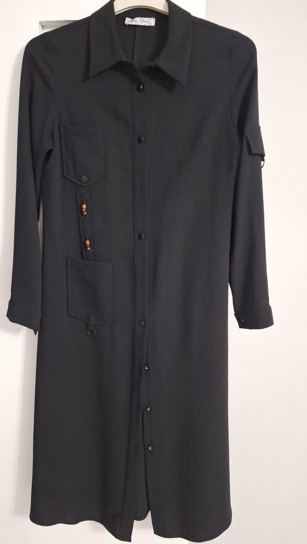 Boy 120 Düğmeli, siyah uzun kollu tunik çentikli yaka ve düğmeli ön detaylara sahiptir. Sentetik kumaştan yapılmış, ofis ve günlük kullanıma uygundur.