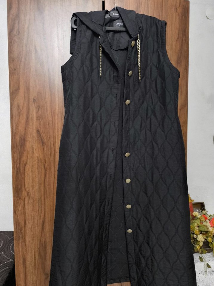 Düğmeli Siyah Uzun Kadın Yelek