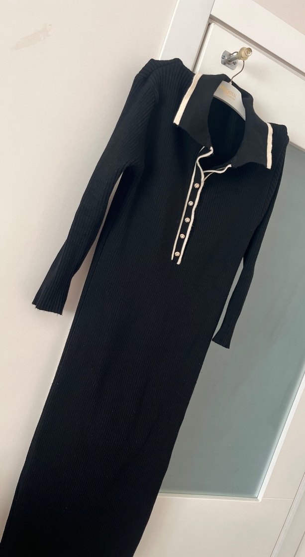 Düğmeli Siyah Uzun Kol Elbise. Boy 130 bel 40 cm