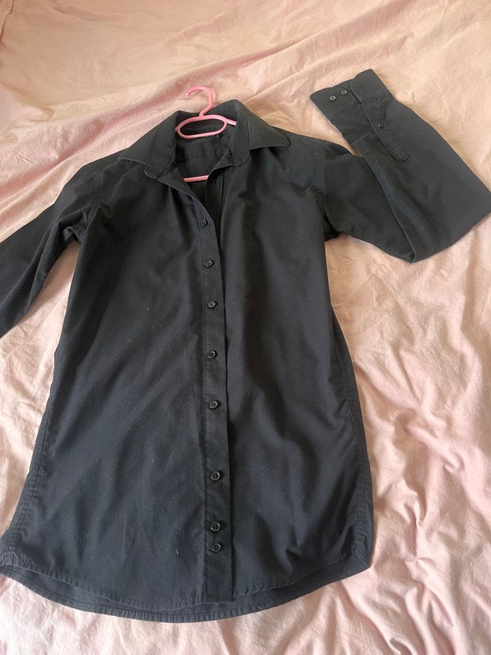 Tudors marka Düğmeli, yakalı ve uzun kollu siyah gömlek, vücuda oturan kesimde, sentetik yumuşak kumaştan yapılmıştır.