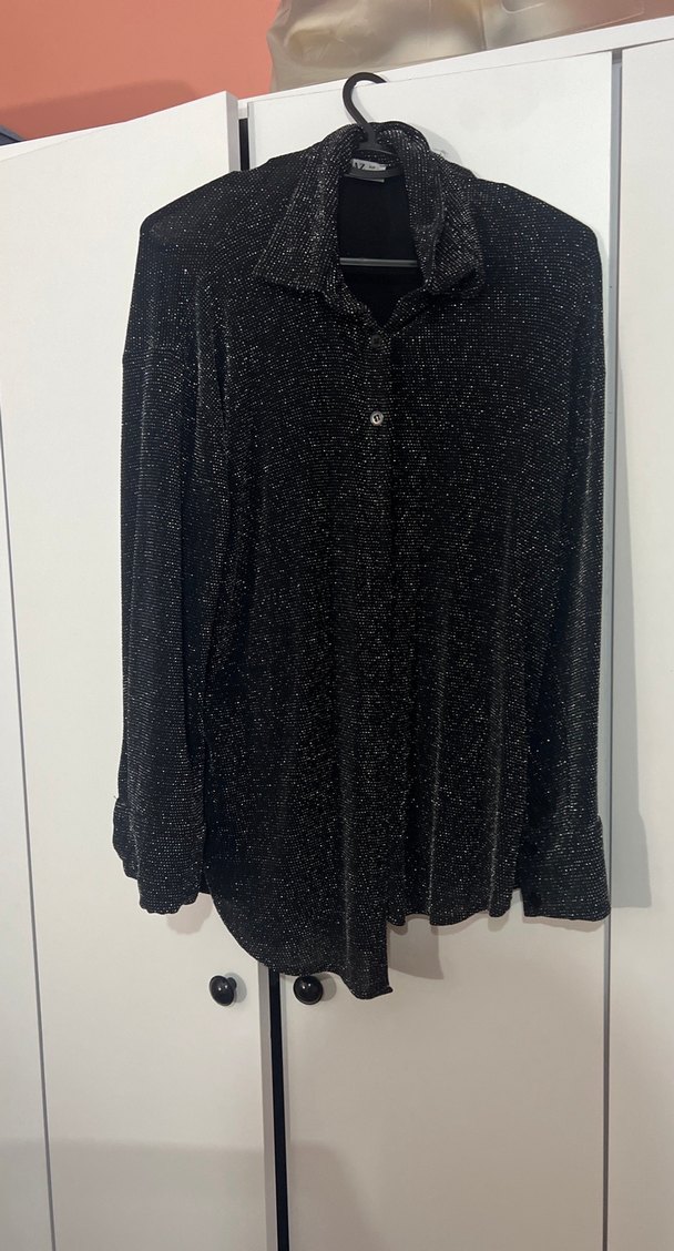 Siyah uzun kollu, düğmeli gömlek, kesik yaka ve bol kesimlidir. Sentetik kumaştan üretilmiş olup, gotik tarzda ofis kullanımı için uygundur. BİR TIK UZUN GENİŞ KALIp M-L_ xl