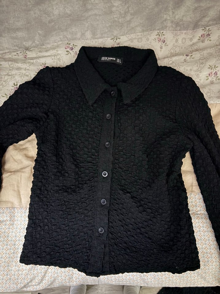 Düğmeli, uzun kollu, siyah gömlek. Fitted kesim ve klasik yakası ile ofis için uygundur. Gotik tarzda şık bir parça.