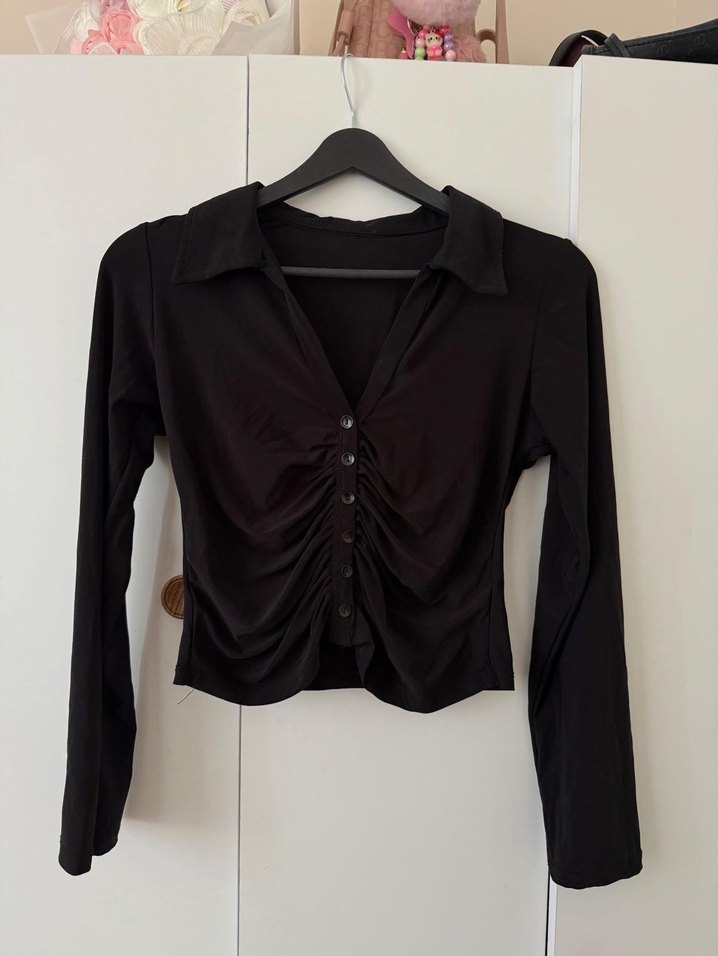 Düğmeli Siyah Uzun Kollu Kadın Bluz