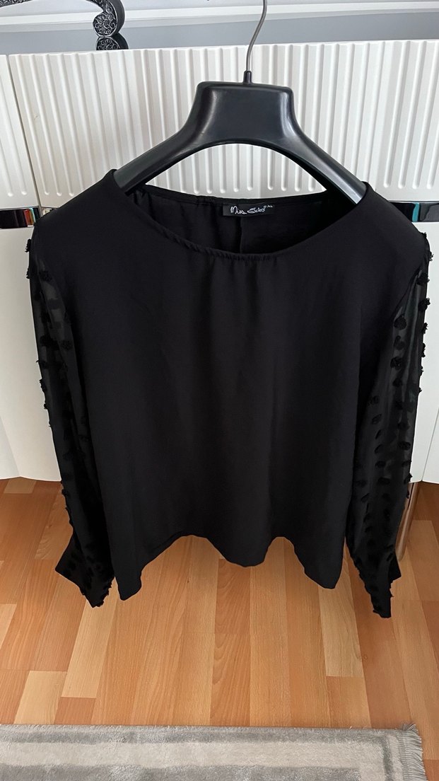 Düğmeli Siyah Uzun Kollu Kadın Bluz