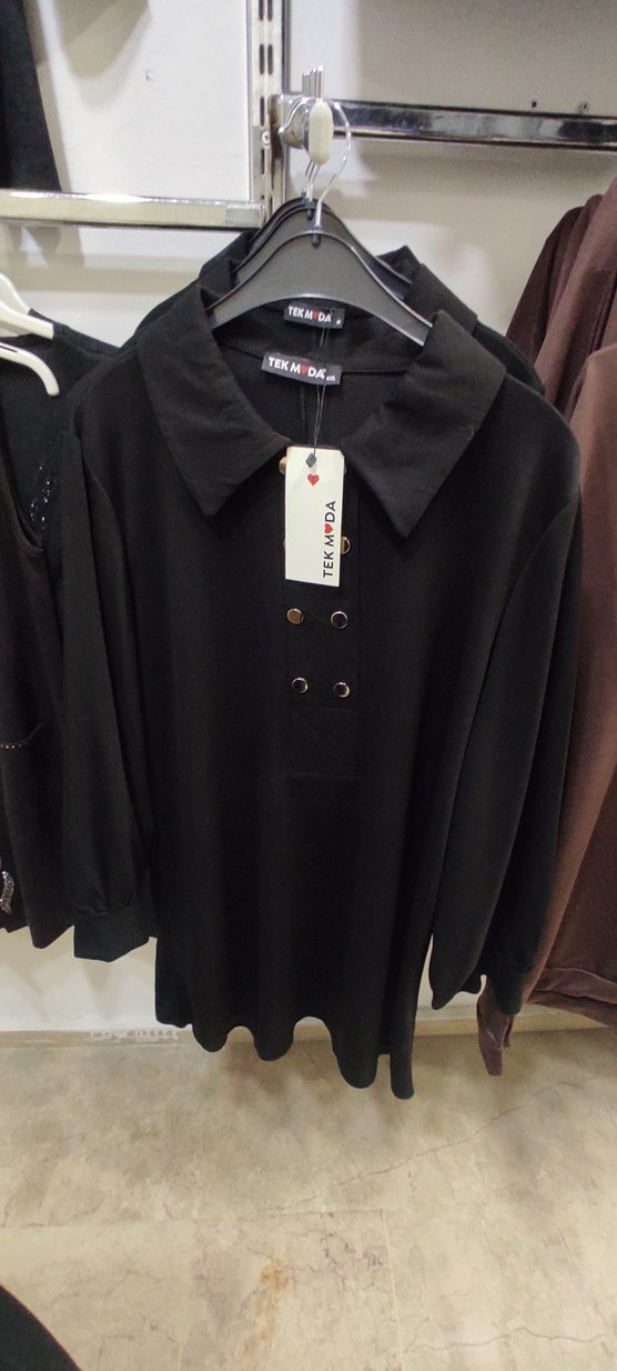 Düğmeli Siyah Uzun Kollu Kadın Bluz