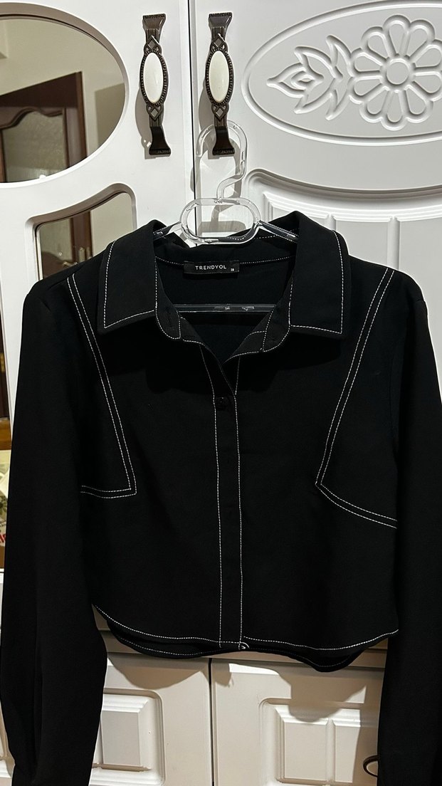 Düğmeli Siyah Uzun Kollu Kadın gömlek