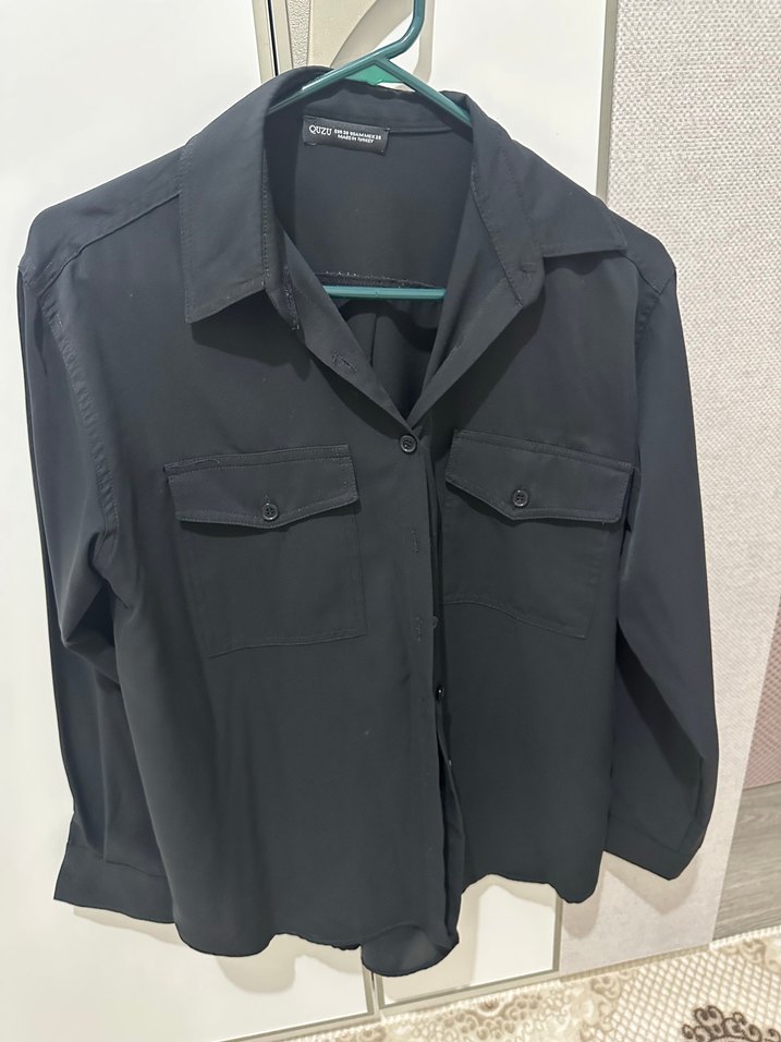 Düğmeli Siyah Uzun Kollu Kadın Gömlek Quzu