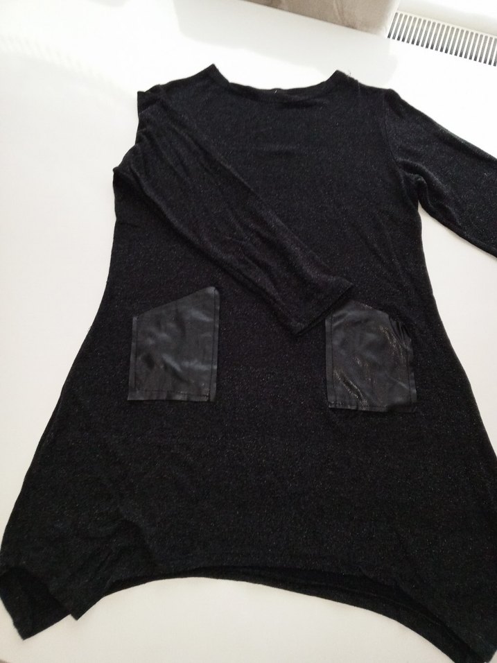 Uzun kollu, bisiklet yakalı ve bol kesim siyah tunik. Düğmeli detaylar ve iki suni deri cep içerir. Midi boyda, günlük kullanıma uygun goth tarzı.