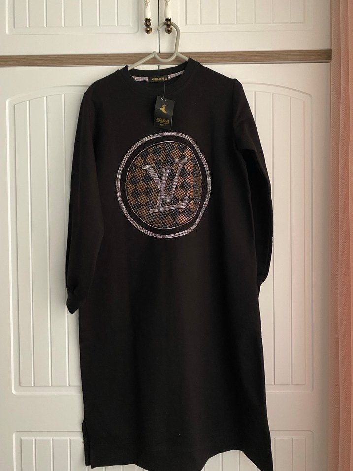 Siyah uzun kollu, düğmeli, baskılı ve bol kesim kadın tunik. Sentetik kumaştan üretilmiştir, günlük kullanıma uygundur. Ayşe Akay markadır.