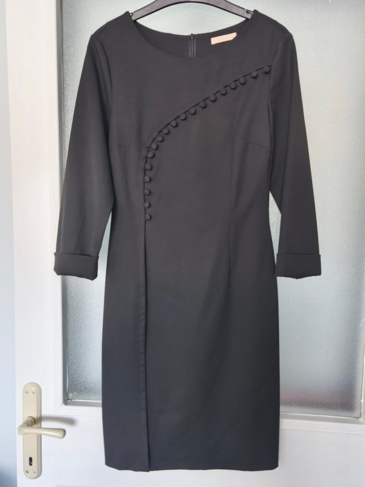 Düğmeli Siyah Uzun Kollu Ofis Elbisesi