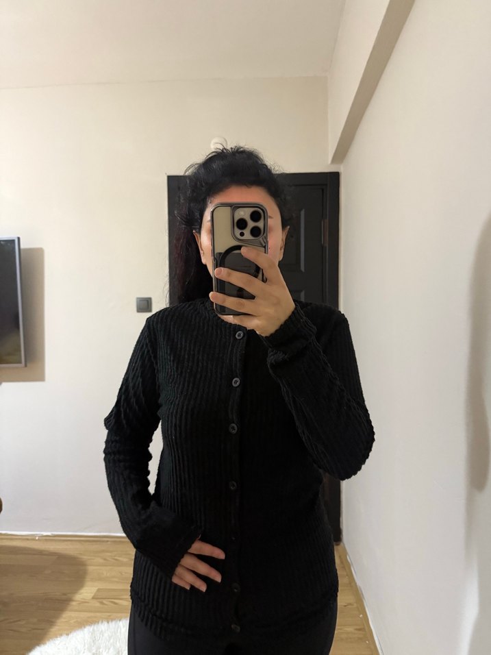 Düğmeli Siyah Uzun Kollu Triko Kazak