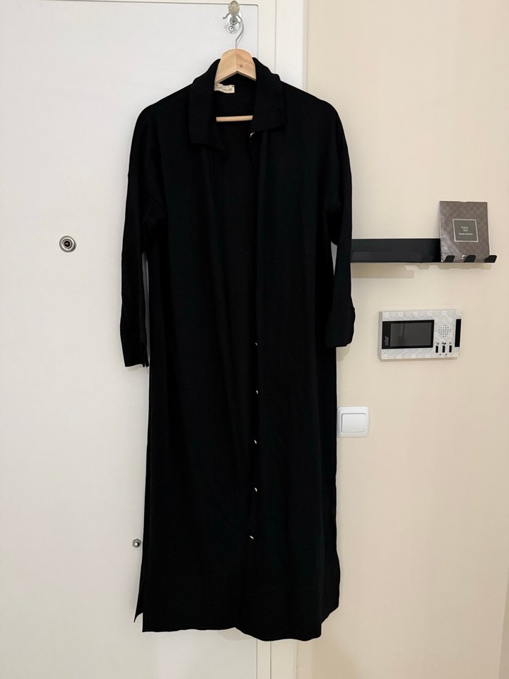 Düğmeli Siyah Uzun merserize pardesü