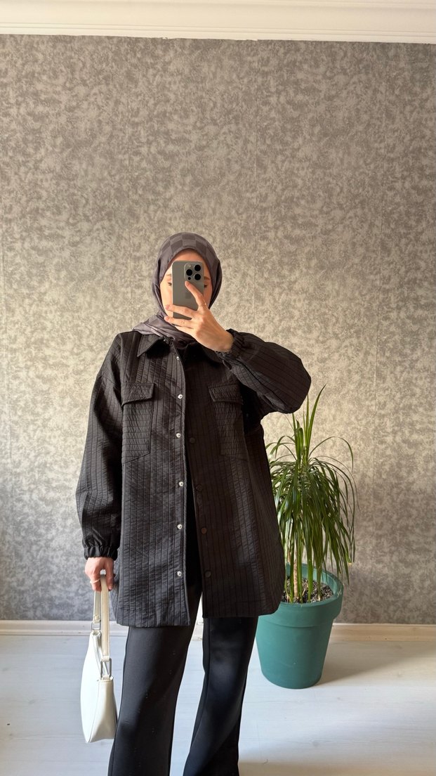 Düğmeli Siyah Uzun Street Wear Kadın Kaban