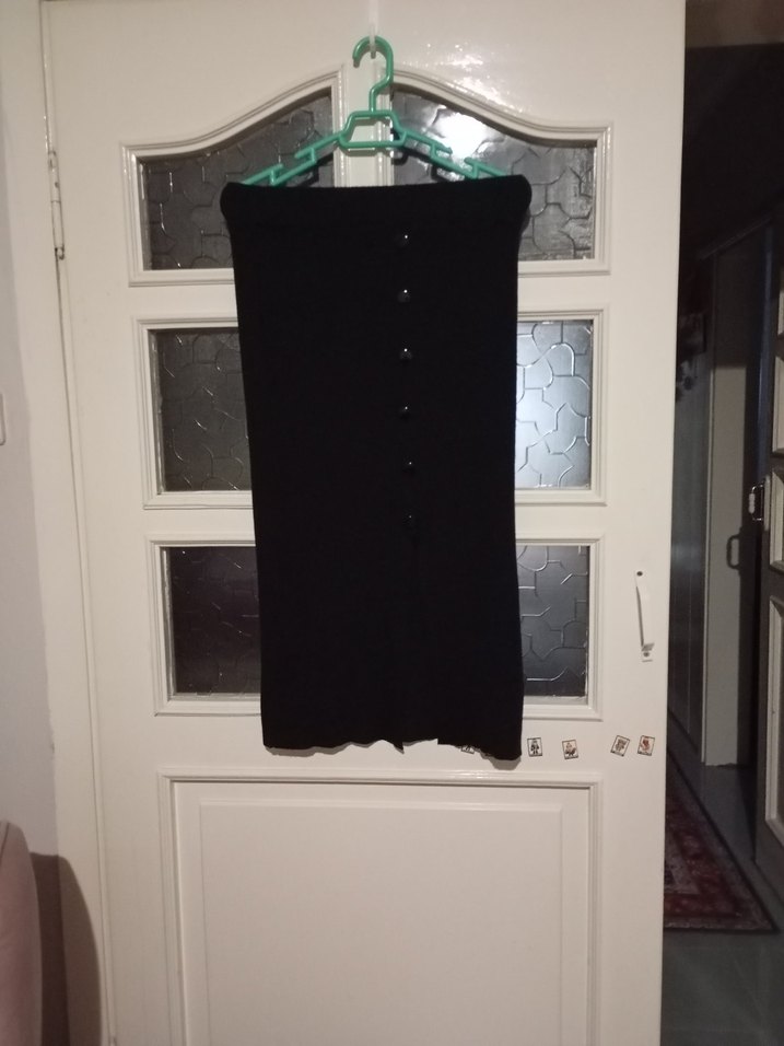 Düğmeli, siyah uzun etek, triko kumaştan, önden düğmeli gotik stil sevenler için uygun.