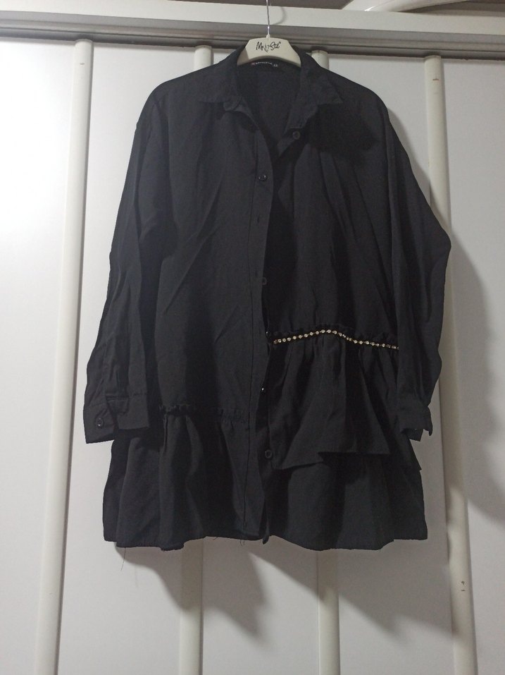Düğmeli Siyah Uzun tunik
