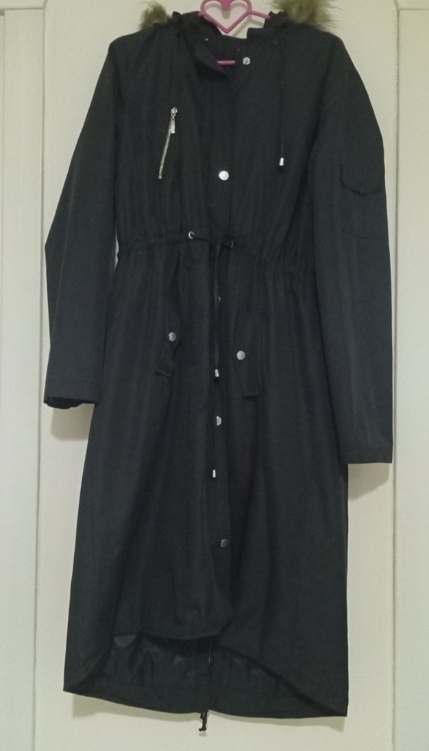 Düğmeli, uzun siyah kaban notched lapel yakaya sahip ve bol kesimdir. Sentetik kumaştan üretilmiş, uzun kolludur ve minimalist goth tarzındadır. koldaki çıt düşmüştür arkası uzun önü kısa modeldir