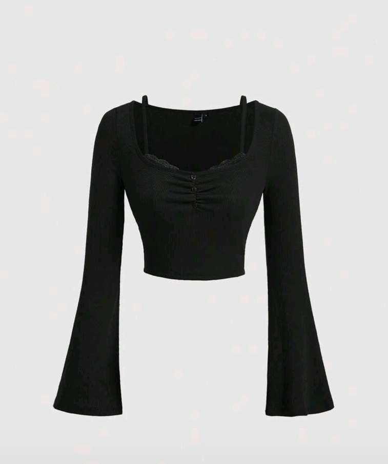 Düğmeli Siyah V Yaka dantelli Crop killstar gotik grunge goth
