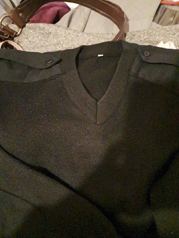 Düğmeli omuz detaylı, V yakalı, normal boyda, uzun kollu siyah erkek kazak. Yumuşak sentetik kumaştan, günlük kullanıma uygun goth tarzında.