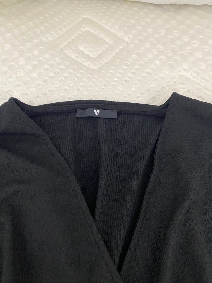 Nefes alabilen keten kumaştan yapılmış, düğmeli ve V yaka siyah hamile bluzu. Uzun kollu, minimal ve normcore tarzda, günlük kullanım için uygundur.