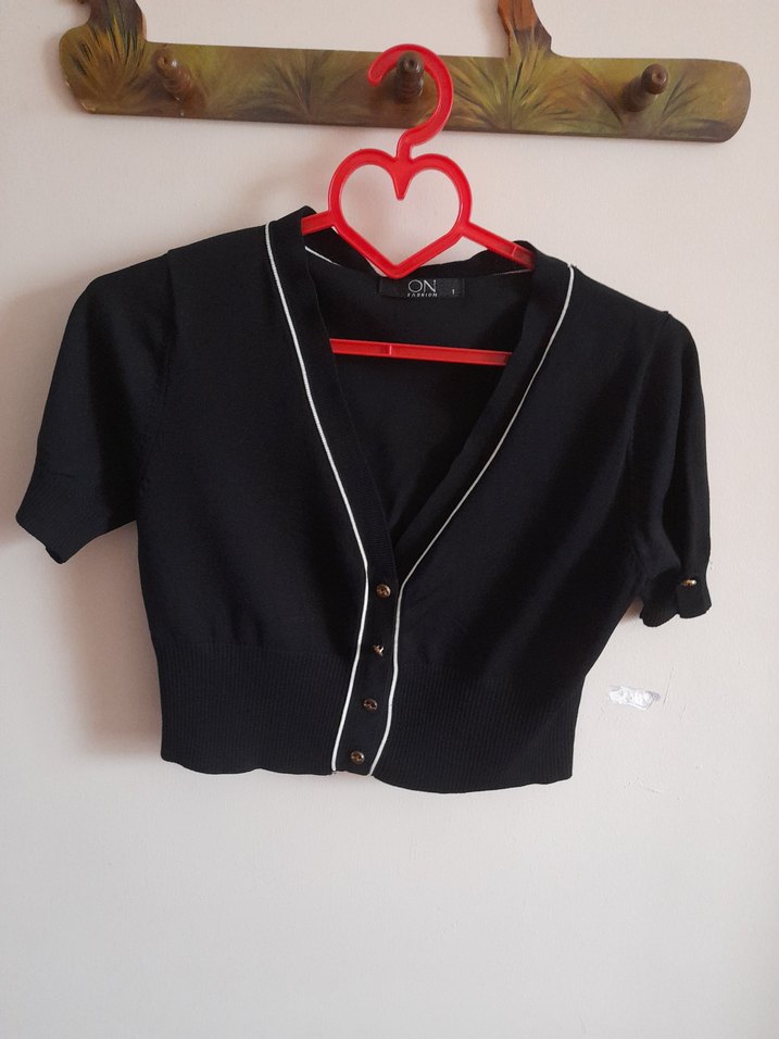 Temiz kullanılmıştır. En 41 cm boy 40 cm.İç etiketini uzun olduğu için kesmişim.Kolsuz elbiselerin üzerine giyilebilir.