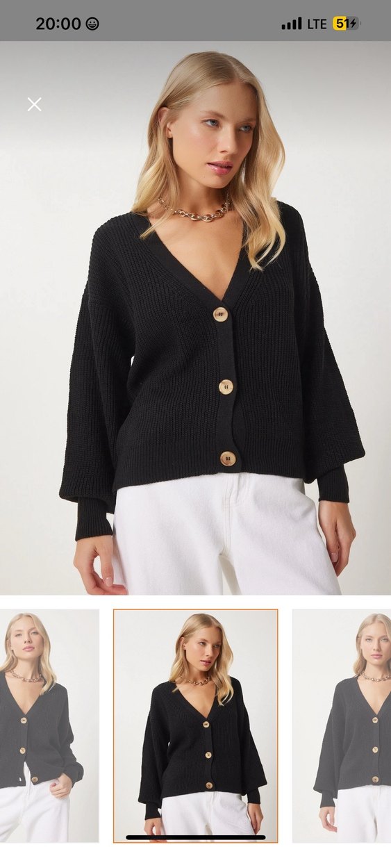Siyah triko hırka, V yaka, uzun kollu ve düğmeli tasarıma sahiptir. Midi uzunlukta, rahat kesim ve desensizdir, günlük kullanıma uygundur.