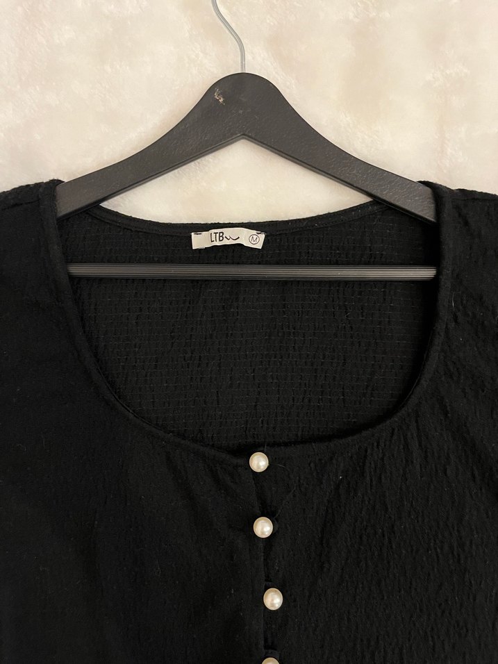 Siyah ve kırmızı yazlık bluz düğmeli.düğmeleri inci düğme