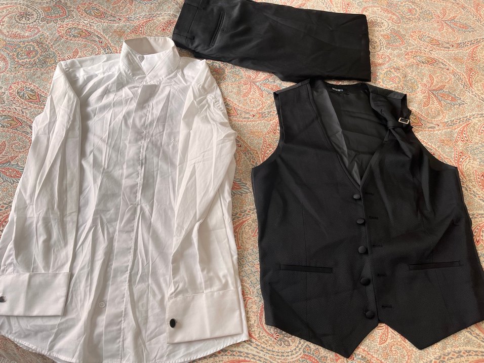 Düğmeli Siyah Yelek ve Beyaz Gömlek pantolon Takımı