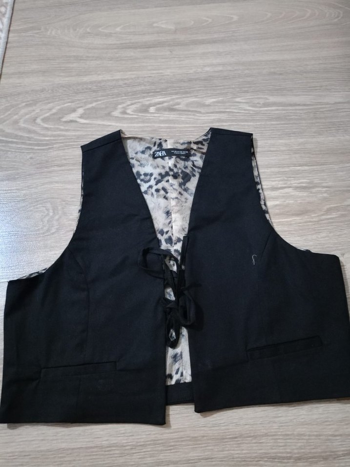 Kolsuz, V yakalı siyah yelek, düğmeli ve yılan desenli astara sahip. Normal kesim ve midi boyda, sokak modası ve grunge punk tarzını birleştirir. s.m uyumlu