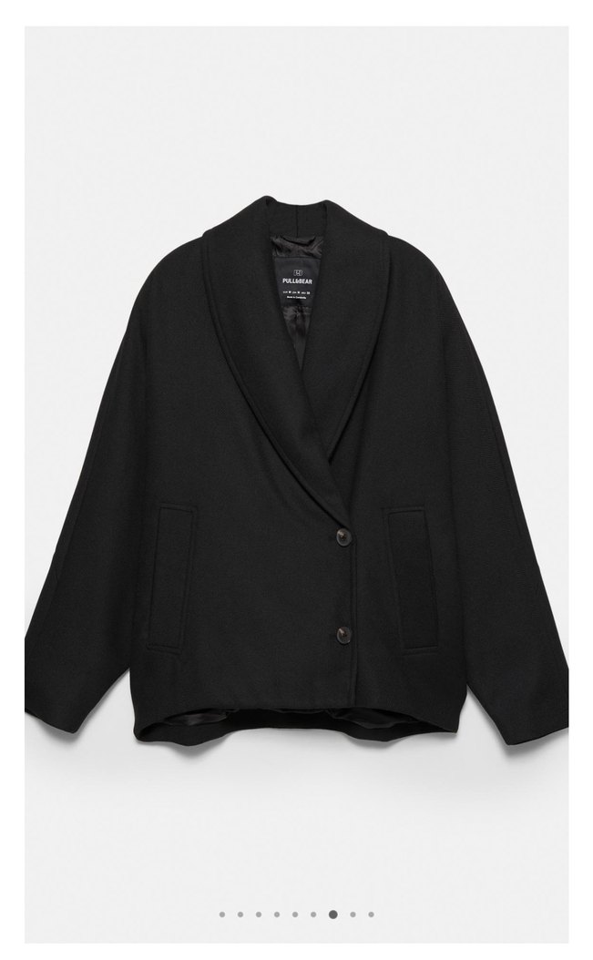Düğmeli önü ve şal yaka detaylı siyah yün ceket, normal kesim ve uzun kolludur. Midi boyu ve sade tasarıma sahip.