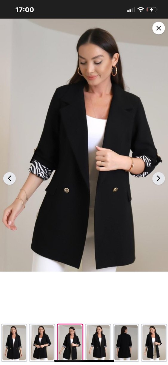 Düğmeli, siyah renkte, zebra desenli kol içi detaylı, normal boy kadın blazer. Notch yakalı ve uzun kolludur, ofis için uygundur.