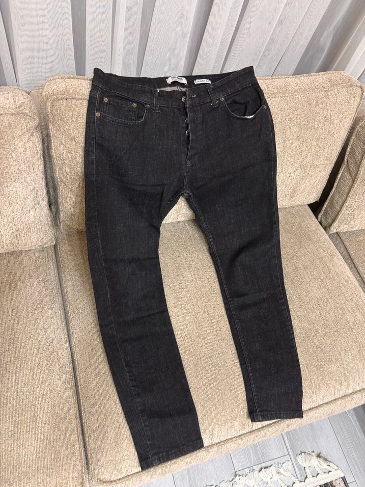 Düğmeli önü ve normal boyu ile skiny fit erkek kot pantolon. Antrasit renkte, desen içermeyen günlük rahat kullanım için uygun. Kusuru yok