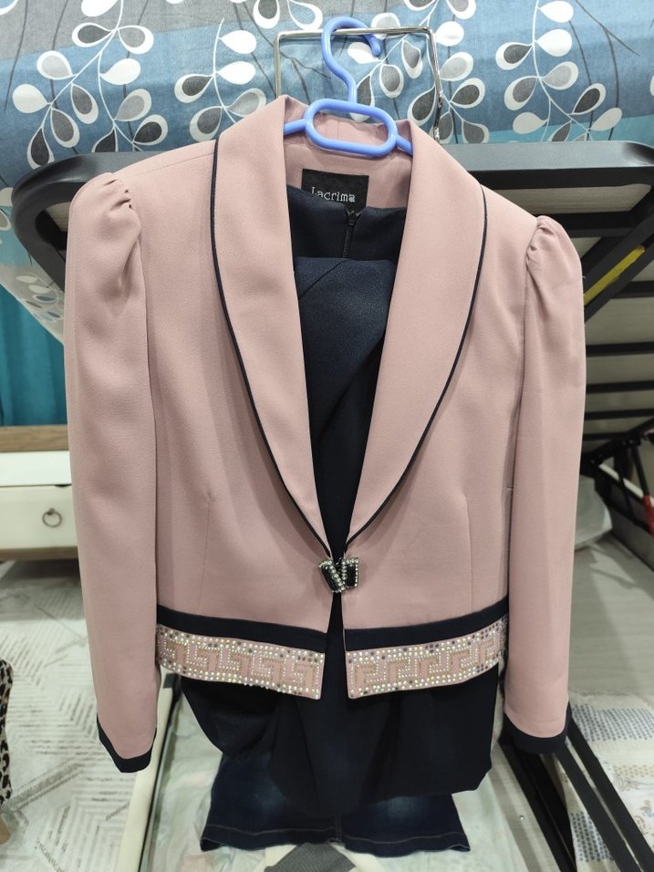 Düğmeli, uzun kollu, maxi boy pembe kadın takımıdır. Notch yaka ve baskılı deseniyle modern klasik tarzda, ofis kullanımına uygundur. Sentetik kumaştan yapılmıştır. 42 beden fakat 38-40-42 beden rahatlikla olur. Arkasinda fermuarin altinda kucuk bir sökülme var evde kolaylıkla tadilat yapılabilir. onun dışında bir sıkıntısı yok.