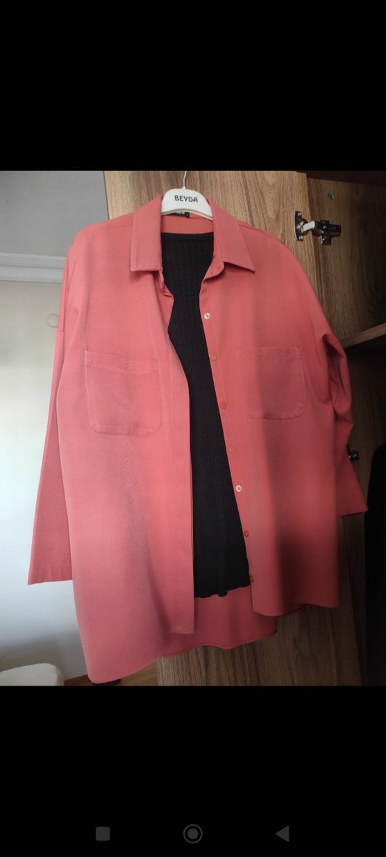 Düğmeli somon rengi Uzun Kollu Kadın Gömlek
