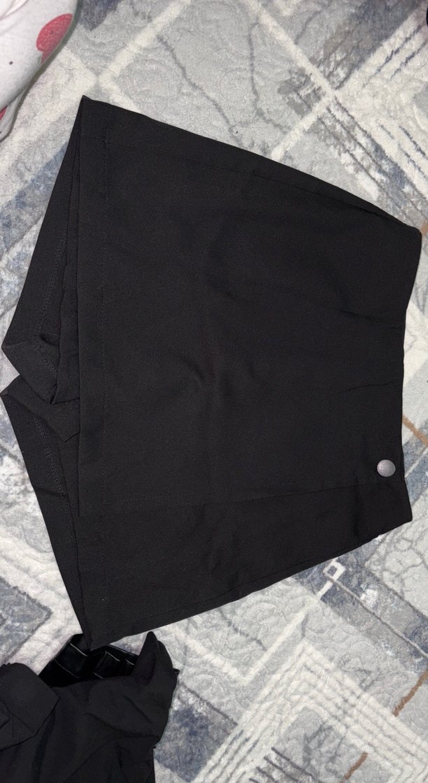 Sentetik kumaştan, düğmeli ve şortlu, bol kesim siyah mini etek. Outdoor rahat sokak stili için uygundur.