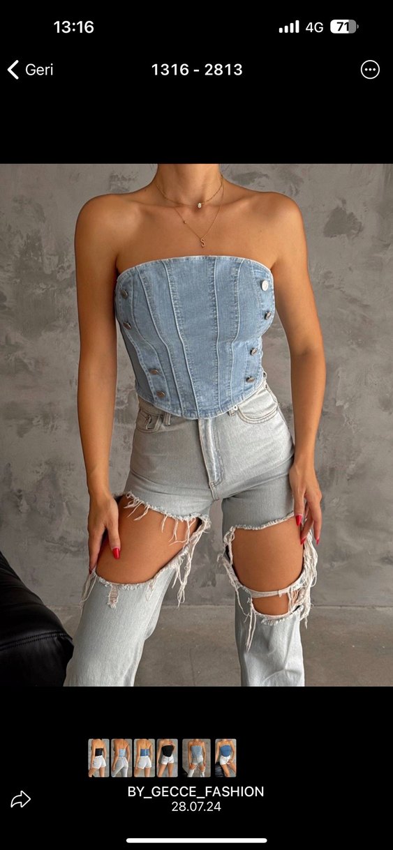 Düğmeli Straplez Kısa Denim Bustiyer 2 adet