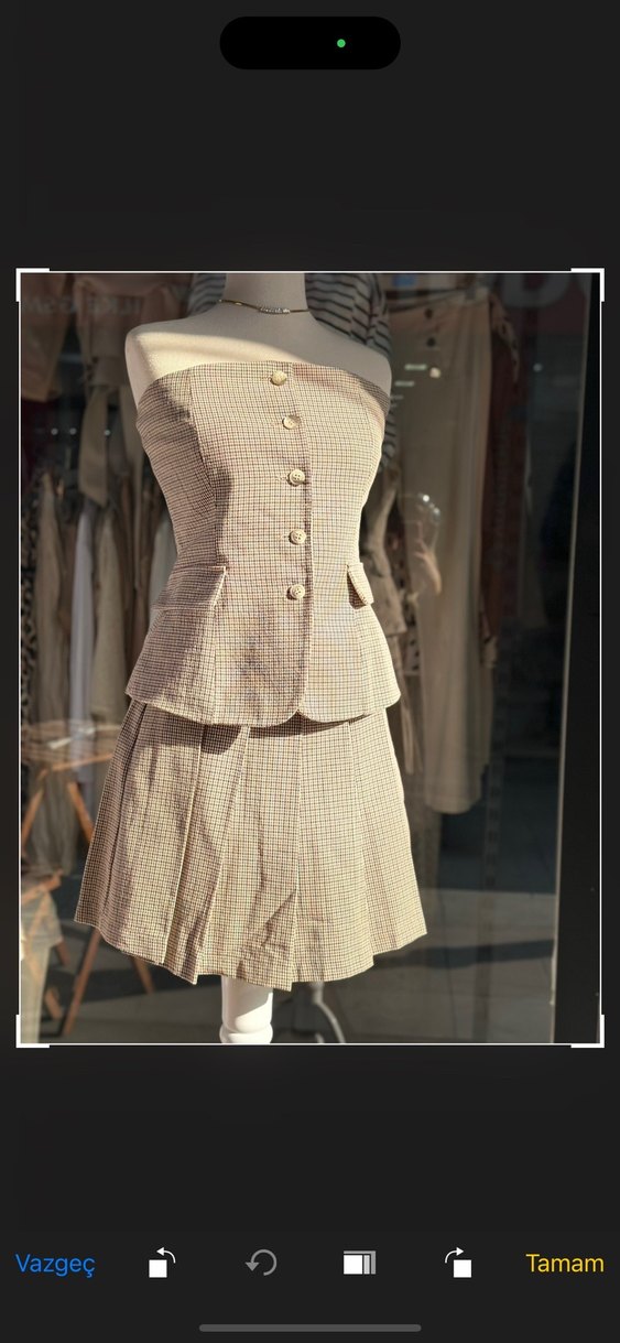 Düğmeli Straplez Vintage Mini Kadın Takım