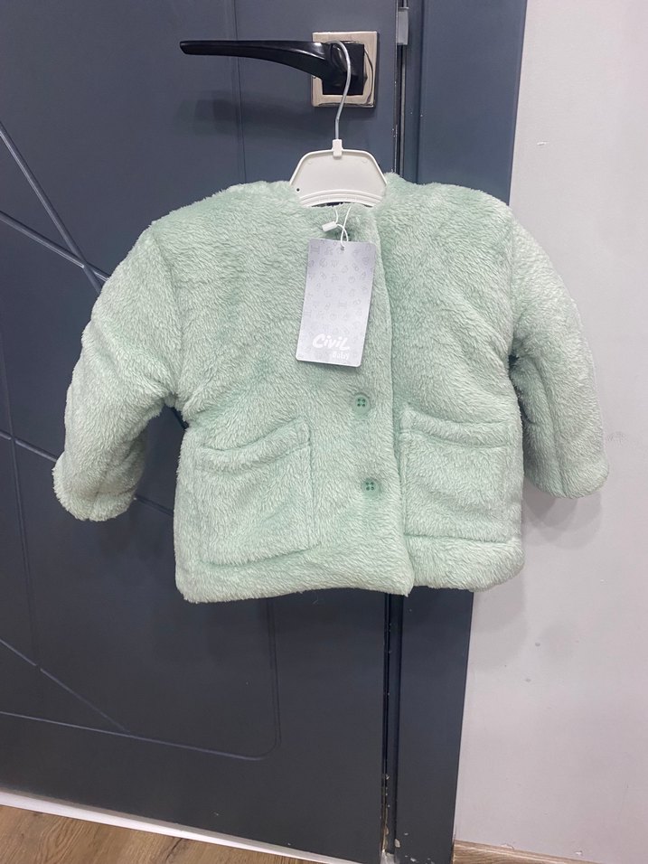 Düğmeli su yeşili Kız Çocuk mont kaban