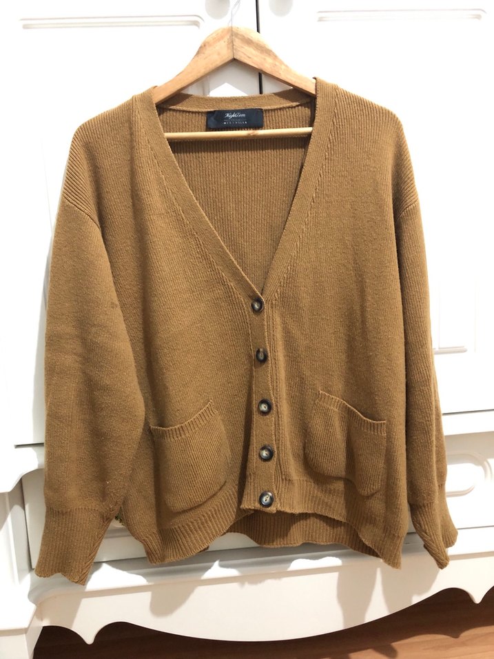 Adil Işık ürünüdür. Düğmeli önü, normal kesimi, uzun kollu ve yakalı taba/kahverengi hırka, günlük kullanıma uygun rahat ve normcore tarzda.