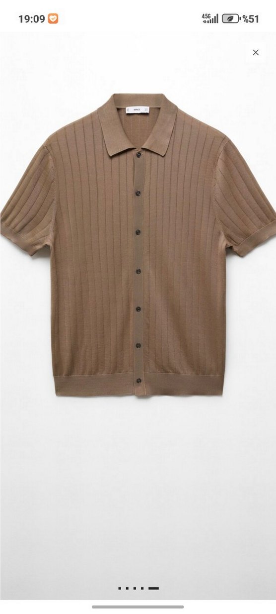 Pamuk karışımlı kumaş. İnce örgü kumaş. Fitilli tasarım. Kısa kol. Düz etek ucu. Ön düğme kapama. Boyun, kol ve alt kısmında fitilli detaylar. Klasik yaka. Kompozisyon: 60% viskoz, 40% pamuk