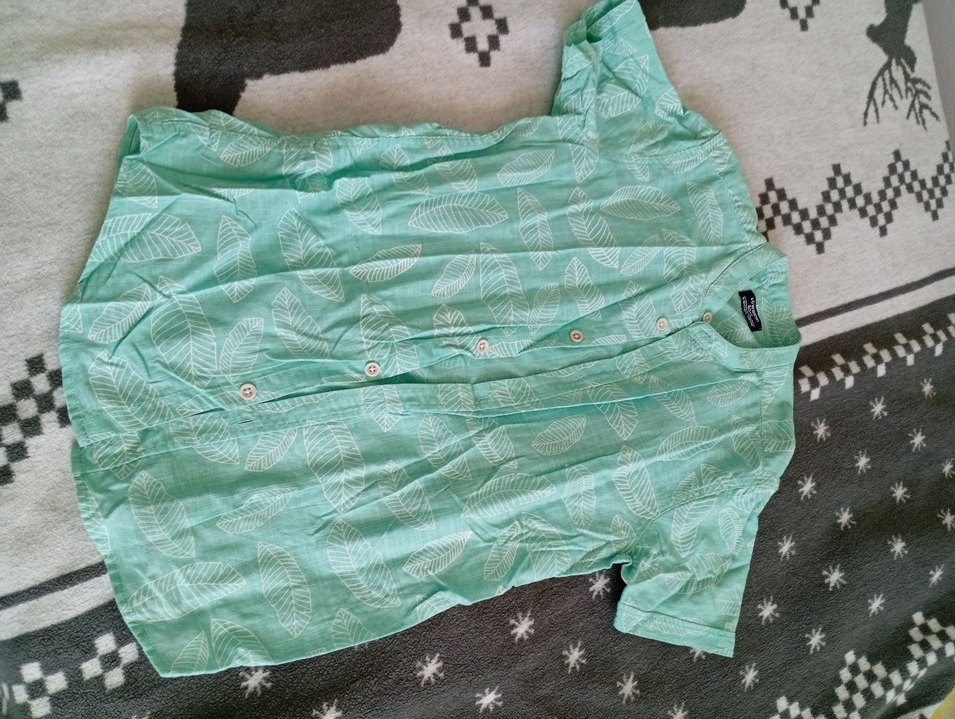 Düğmeli ön kısmı, kısa kollu ve bol kesimiyle erkek çocuk gömleği Yakalı, kısa boylu ve nefes alan yumuşak keten kumaştan üretilmiştir.