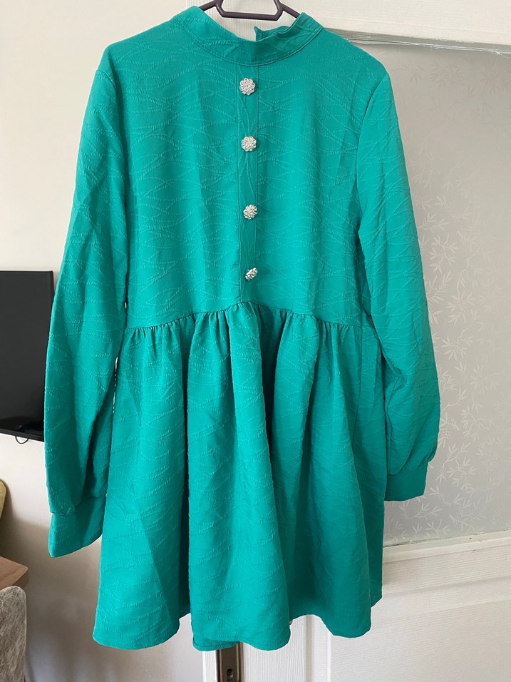 Düğmeli, uzun kollu turkuaz hamile tunik. Kısa boyu ve bol kesimiyle rahat, parlak keten kumaştan üretilmiştir. Günlük kullanıma uygundur.