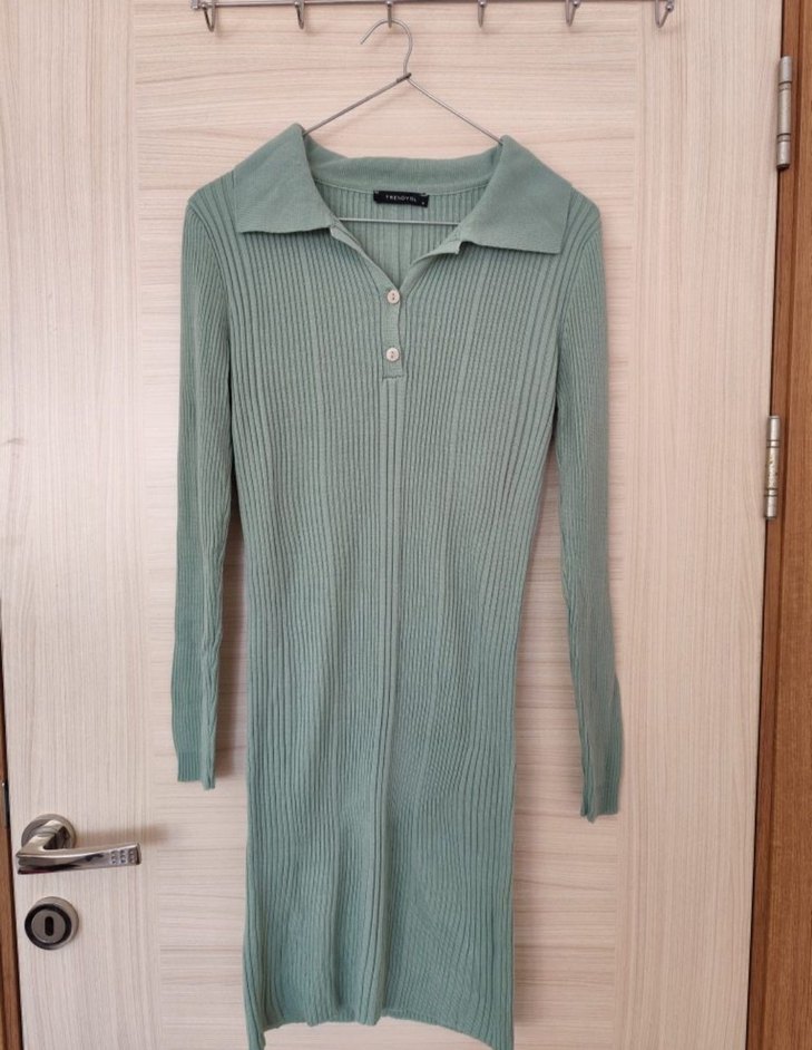 Turkuaz renkli triko kadın elbise, uzun kollu ve yakalıdır. Düğmeli ön kısmı ve vücuda oturan kesimi ile günlük kullanıma uygundur. Pastel tonu şık bir dokunuş sağlar. temiz kullanıldı yeni gibi .defosu yok
