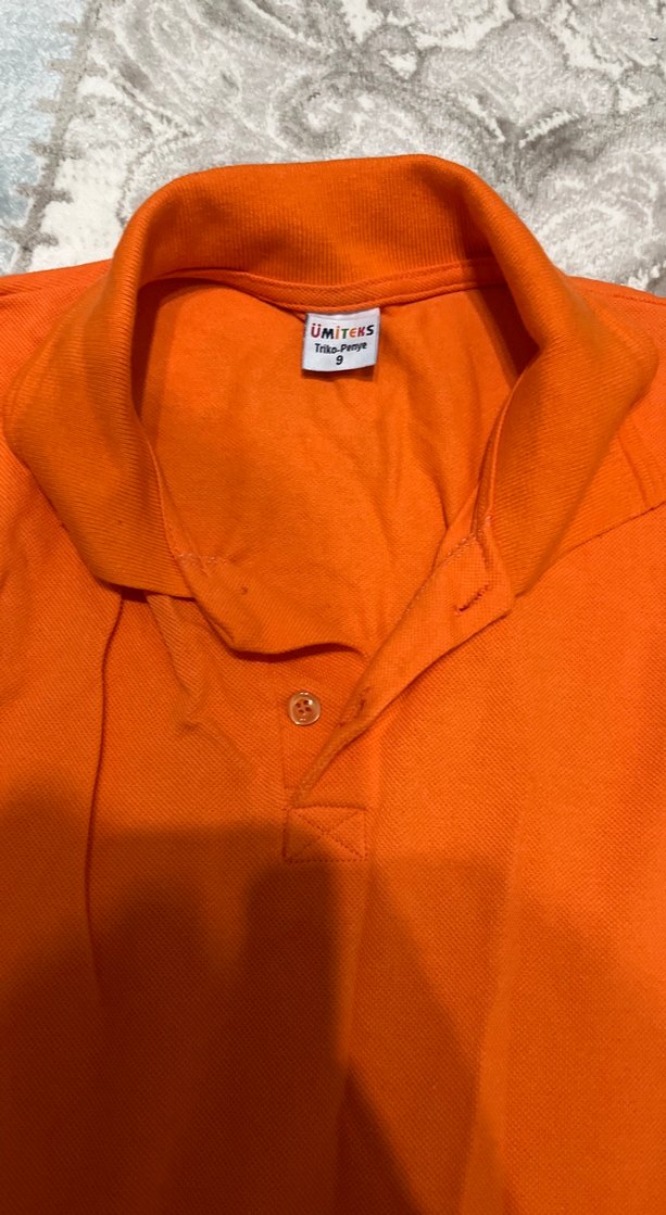 Düğmeli yakalı, kısa kollu, turuncu parlak renkte, yumuşak ve sıcak dokulu erkek polo tişört. Casual sokak stiline uygun, UMITERS markalı.