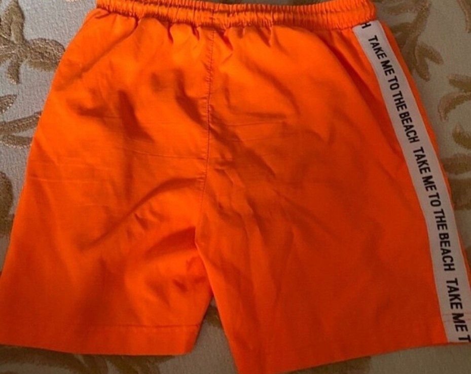 Düğmeli detaylı, parlak turuncu renkli, normal midi boyda, dar kesim erkek yüzme şortu. Dış mekan ve athleisure tarzına uygun.