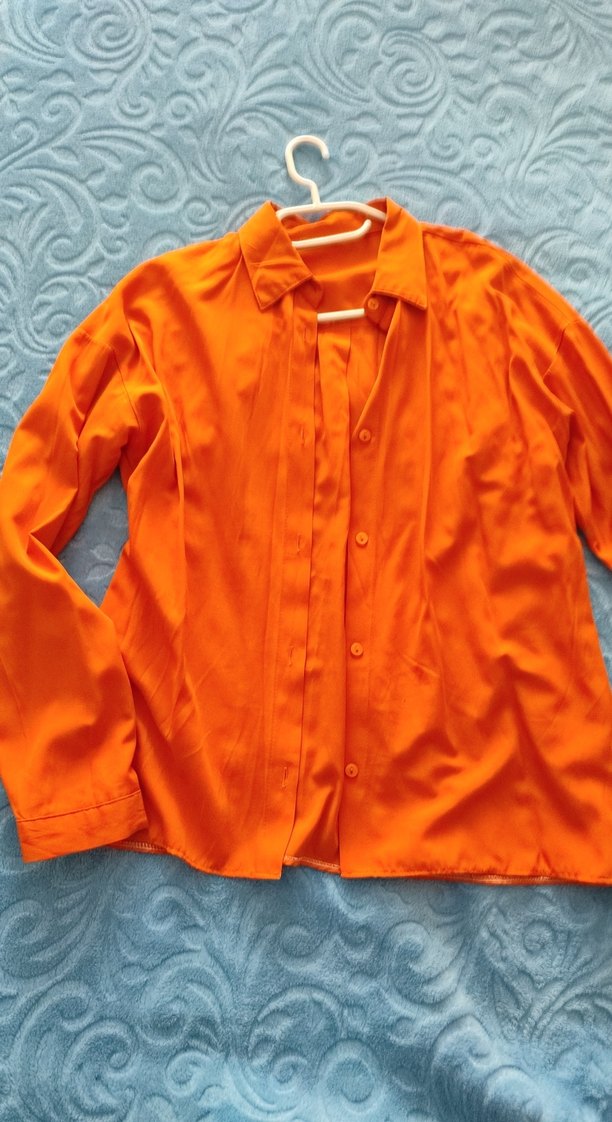 Düğmeli Turuncu Kadın Gömlek