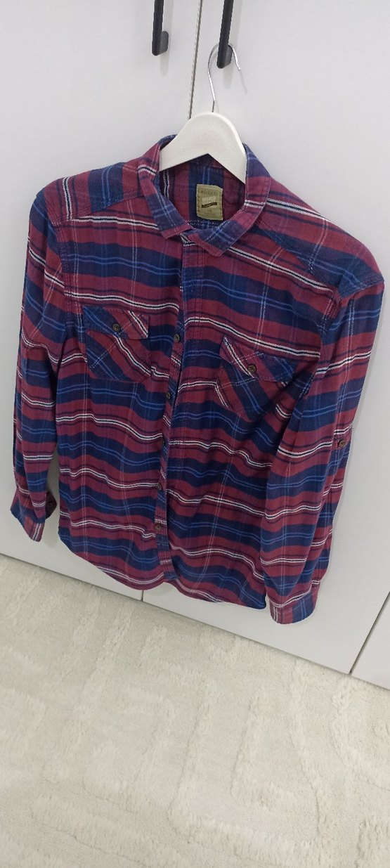 Düğmeli, uzun kollu ve ekoseli Defacto marka M beden gömlek. Herhangi bir defosu yoktur. Fotoğrafta görüldüğü gibidir.