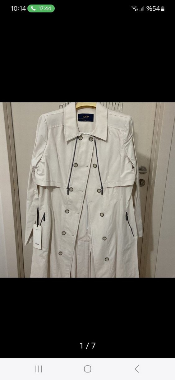 Sifir Tuğba marka düğmeli ve beyaz trençkot,göğüs 53 iki kol arası 56 boy 110 slimfit dar kalıp