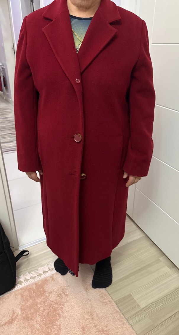 Düğmeli Uzun Bordo Kaşe Kaban