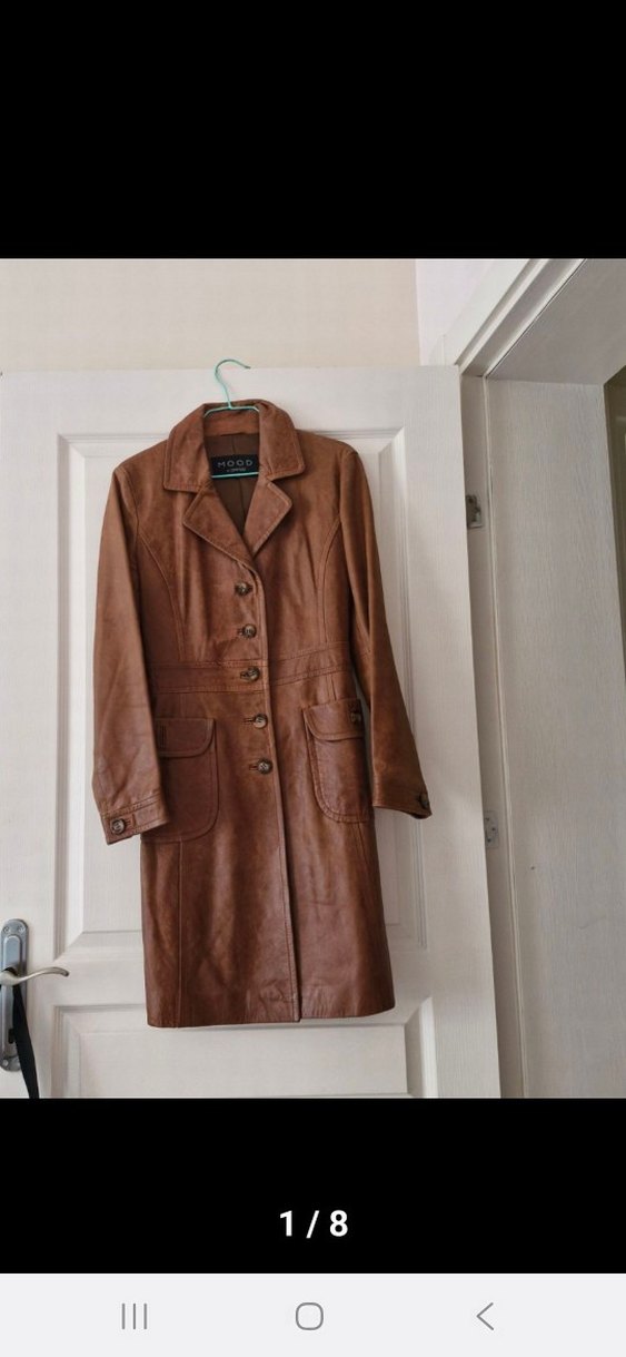 Düğmeli ön kısmı ve kesik yaka detaylı uzun i deri kadın kaban. Regular kesim, 16000 TL ALIMDI KALIBI HARIKA BEL KULPU BELE TAMAMEN OTURUYOR. BENDE IKI RENGI DAHA OLDUĞU IÇIN SATIYORUM BIR KERE DAHI GIYILMEDI .YENI IKI KOL ARASI 45 CM UZUNLUK BOYU İSE 91 CM
